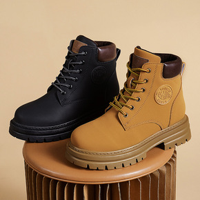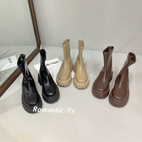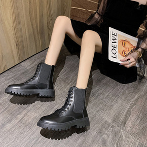 2022秋冬款韩版马丁靴厚底圆头拼接英伦风粘胶鞋马...
