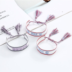 跨境亚马逊棉针织七彩尼泊尔民族风手工编织长流苏友谊...
