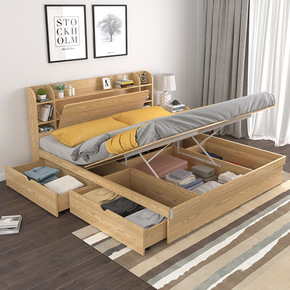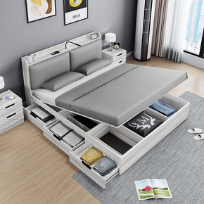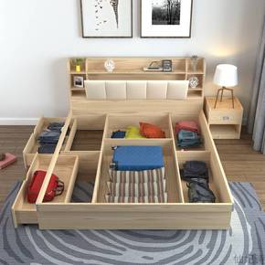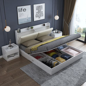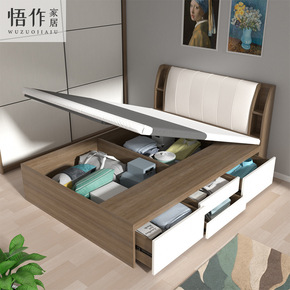现代简约卧室1.8米双人1.5米单人抽屉储物收纳气...