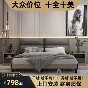 简约双人床1.8米主卧无床头轻奢次卧1.5气动侧开...