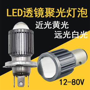 摩托车led大灯超亮强光H4 电动车鱼眼带透镜灯远...