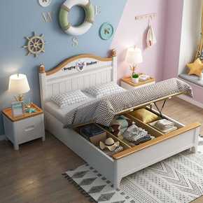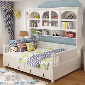 美式全实木省空间儿童衣柜床 一体多功能储物拖床高箱...