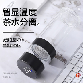 新款现货智能显温隔热茶水分离玻璃杯高硼硅商务泡茶双...