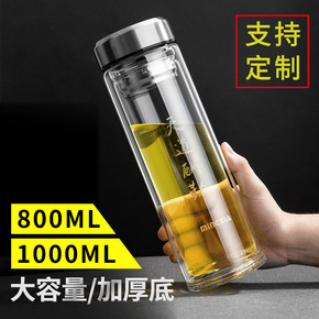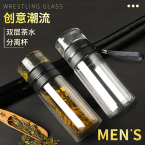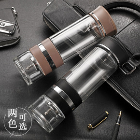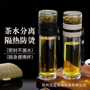 厂家直销双层玻璃杯高档便携带耐热泡茶水杯男商务办公...