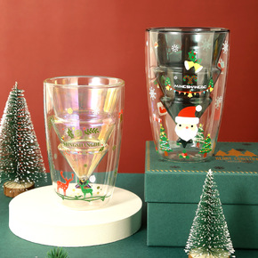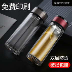 热销商务杯创意玻璃杯双层水杯学生茶杯定制活动礼品批...
