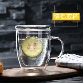 双层玻璃杯透明高硼硅玻璃泡茶杯加厚带盖带滤网便携礼...