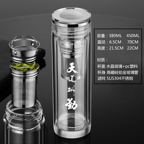 高硼硅双层玻璃杯大容量商务泡茶杯开业庆典广告杯礼品...
