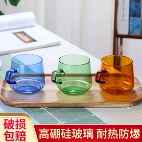 北欧彩色玻璃咖啡杯带把家用客厅喝水杯泡茶杯牛奶杯早...