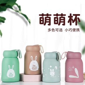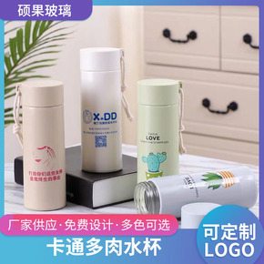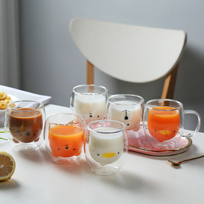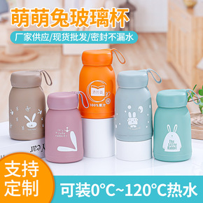 批发卡通玻璃杯学生双层广告地推彩色萌萌兔水杯...