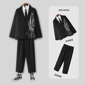 休闲西装外套男宽松韩版潮流大码痞帅男士jk小西服雅...