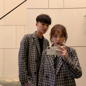 2021年时尚春装新款双排扣西装情侣装男女款休闲西...