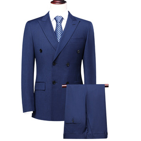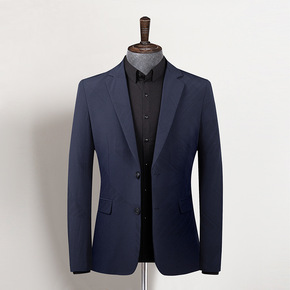 羊毛西服蓝色韩版商务休闲后中开衩戗驳领新郎结婚礼服...