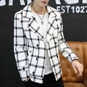 冬季新版男式双排扣男式上衣外套修身款大衣呢大衣商务...