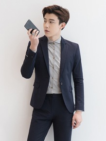 2021春季新款西装男韩版条纹免烫休闲外套潮外贸男...