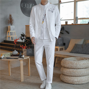 秋季新款2020l中国风男装刺绣盘扣套装男士秋装立...