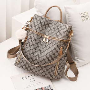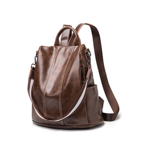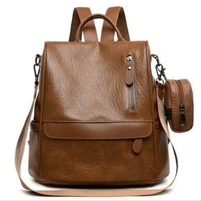 2022欧美复古牛皮女士双肩背包多功能时尚潮流女包...