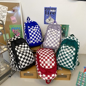 2022新款韩版双肩包女ins简约时尚大容量棋盘格...