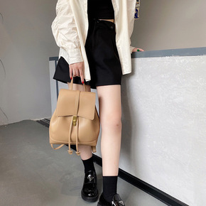 2021新款时尚大容量小众设计感双肩包百搭纯色抽带...