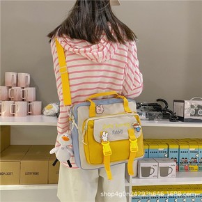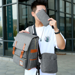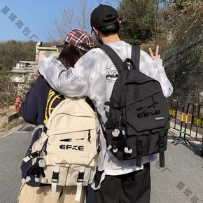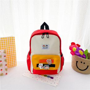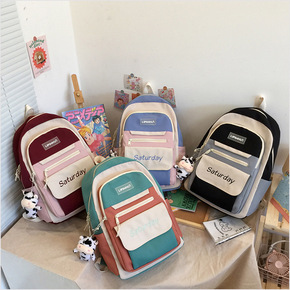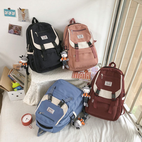 日系风拼色双肩背包街头学生书包潮流帆布背包新款多隔...
