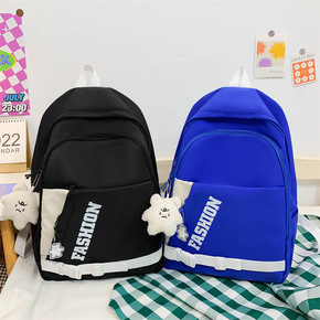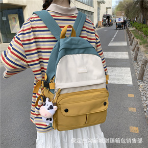 初中生书包女2022韩版新款大容量撞色双肩背包男高...