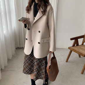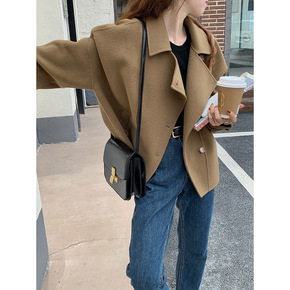 21秋冬新款韩国东大门双面羊绒大衣女短款小个子小西...