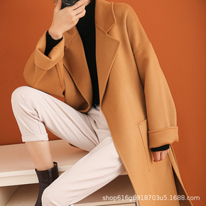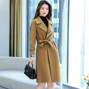 大连工厂双面手缝羊绒呢大衣女21秋冬新款羊毛系带西...