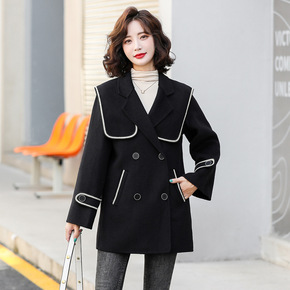 TG 西装领羊毛外套女2021冬季新款双面呢大衣1...