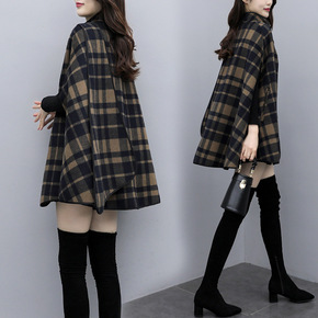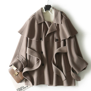2021年秋冬季新款双面羊绒大衣女中长款宽松斗篷款...