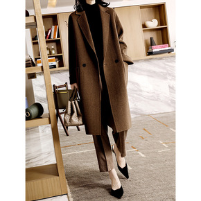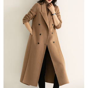 双排扣双面羊绒呢子大衣中长款修身显瘦2021新款秋...