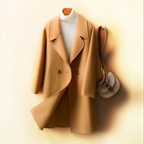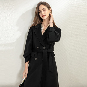 2021新款高端双面呢大衣女中长款秋冬季收腰显瘦西...