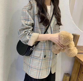 欧洲站女2021年秋冬款长袖格子双面呢羊毛呢大衣英...