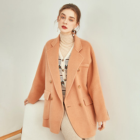 原创设计师女装中长款双面羊绒大衣女士驼色黑色毛呢外...