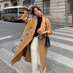 韩版宽松双面羊绒大衣中长款过膝2021年秋冬季赫本...