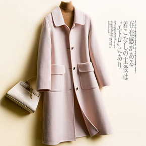 双面羊绒大衣女韩版2021秋季中长款羊毛单排扣斜开...
