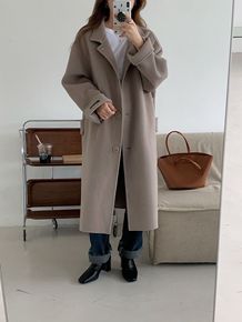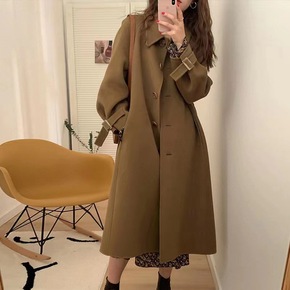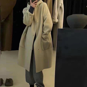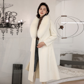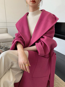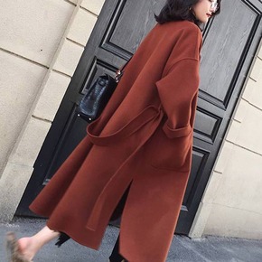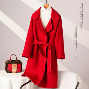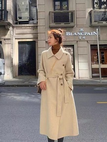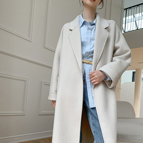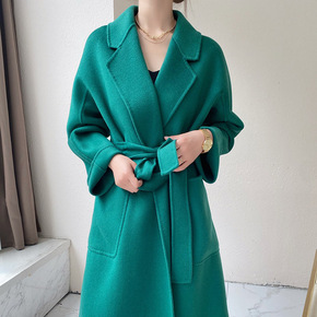 2022秋冬全羊毛双面羊毛大衣 加长款系带宽松大...