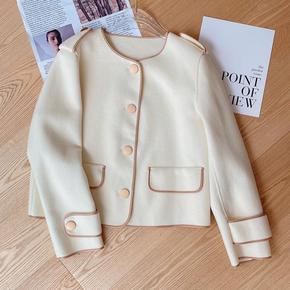 2022秋冬新款小香风百搭网红肩章双面尼大衣短款小...