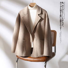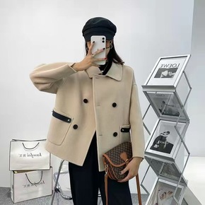 2022秋冬新款短款韩版双面羊绒大衣小个子加厚羊驼...