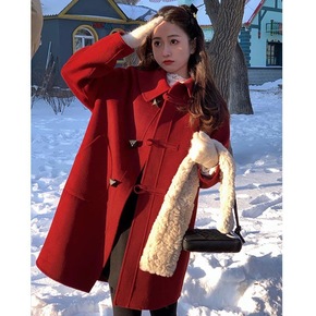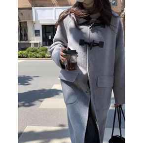 毛呢大衣女宽松加厚牛角扣外套...