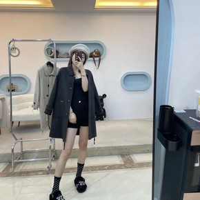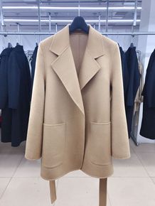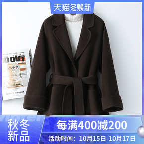 2021年新款双面羊绒大衣女系带收腰短款秋冬毛呢外...