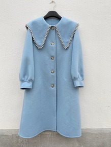 2022秋冬新款双面羊绒大衣纯色娃娃领重工钉珠长款...