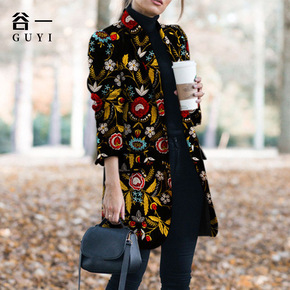 2022新款亚马逊秋冬欧美女装时尚印花加厚长款毛呢...