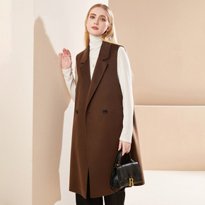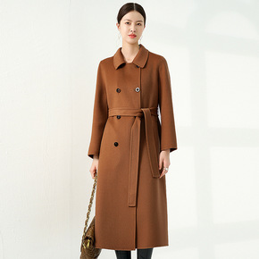 20山羊绒2022秋冬新款系带长款双面羊毛大衣外套...