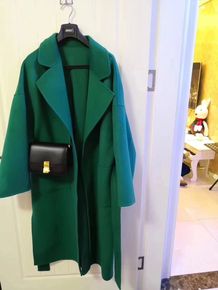 秋冬新款中长款绿色双面手工零羊绒大衣女流行时尚外套...