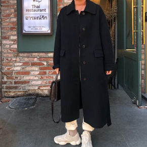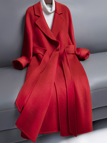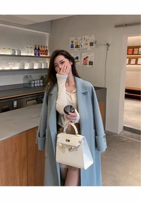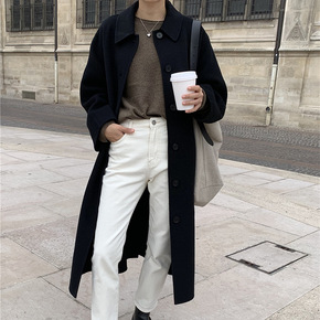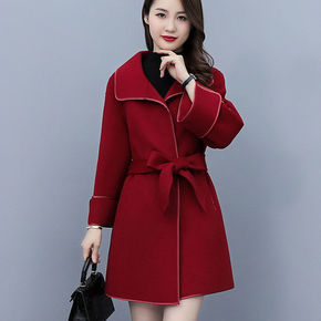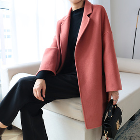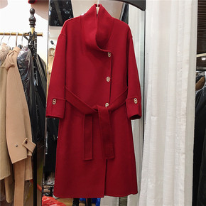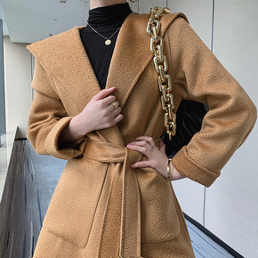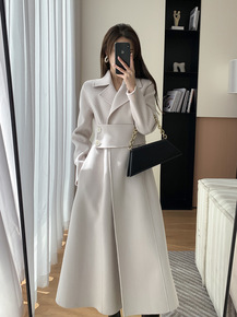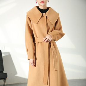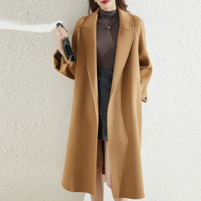 2021秋冬新款宽松单排扣系带双面羊绒大衣女中长款...