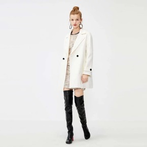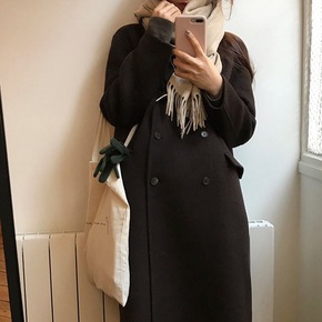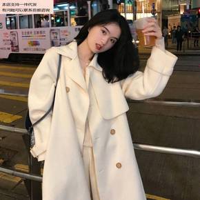 潮ins韩米白色双面羊绒大衣女中长款2021年新款...