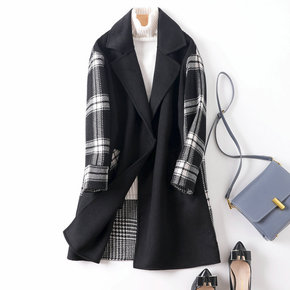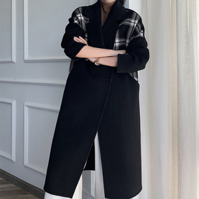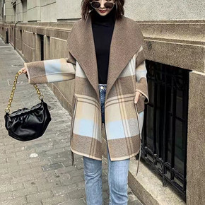 双面羊绒大衣女复古大领子冬季新款大格子羊毛中长款韩...