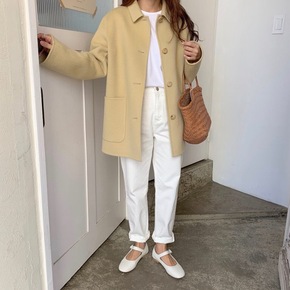 韩国2021秋冬新款大口袋赫本风毛呢外套双面羊绒大...