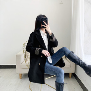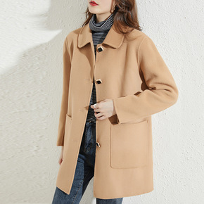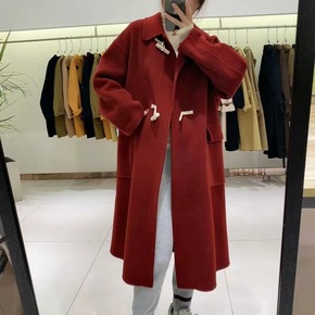 新款欧货韩版双面羊绒大衣女娃娃领牛角扣秋冬2021...