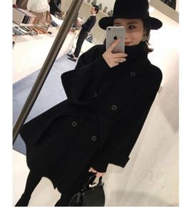 黑色高端双面羊绒大衣女中长款2021年秋冬新款气质...