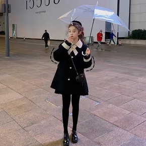 1726新款双面羊绒大衣短款小香风日系复古黑色斗篷...